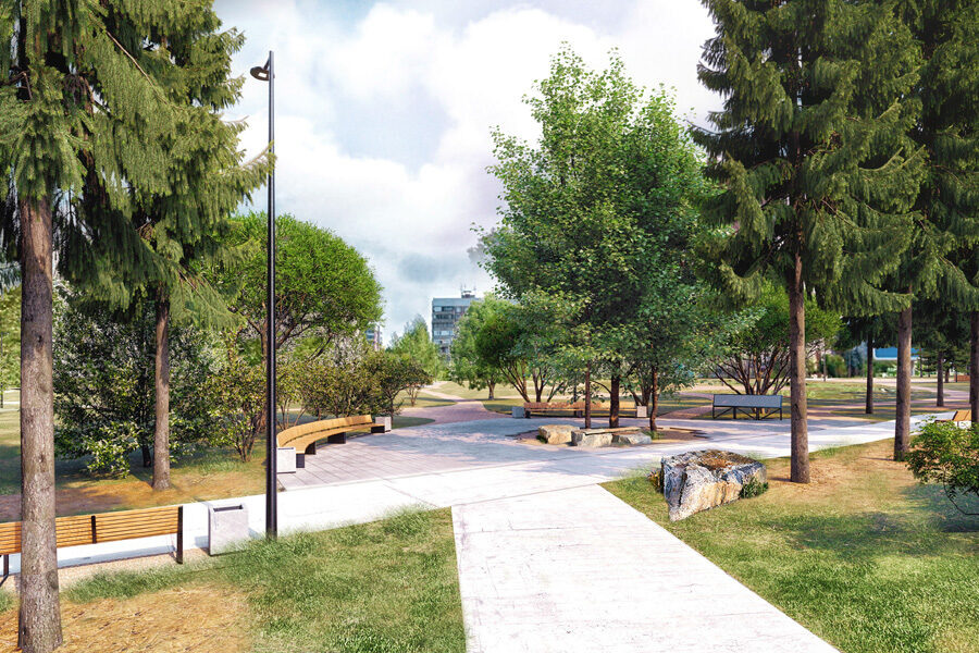 К концу июля следующего года подрядчик построит в сквере спортивную и детскую площадки, обустроит тропинки, дорожку, территорию для выгула собак, освещение.