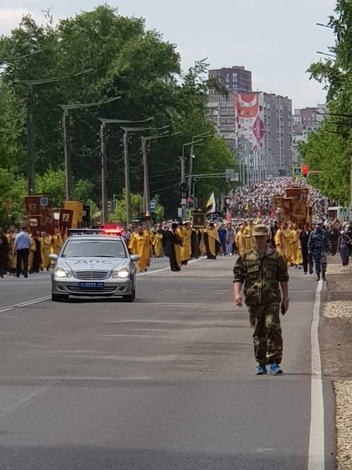 Верующие и туристы под присмотром полиции и скорой помощи идут в Великорецкое. Добровольно.