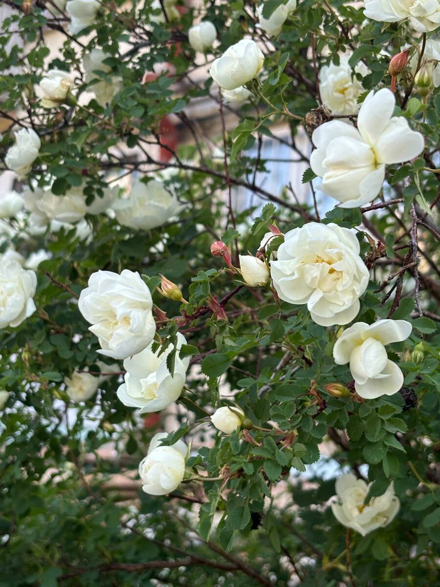 У нас во дворе расцвел белый шиповник, такая красота))
