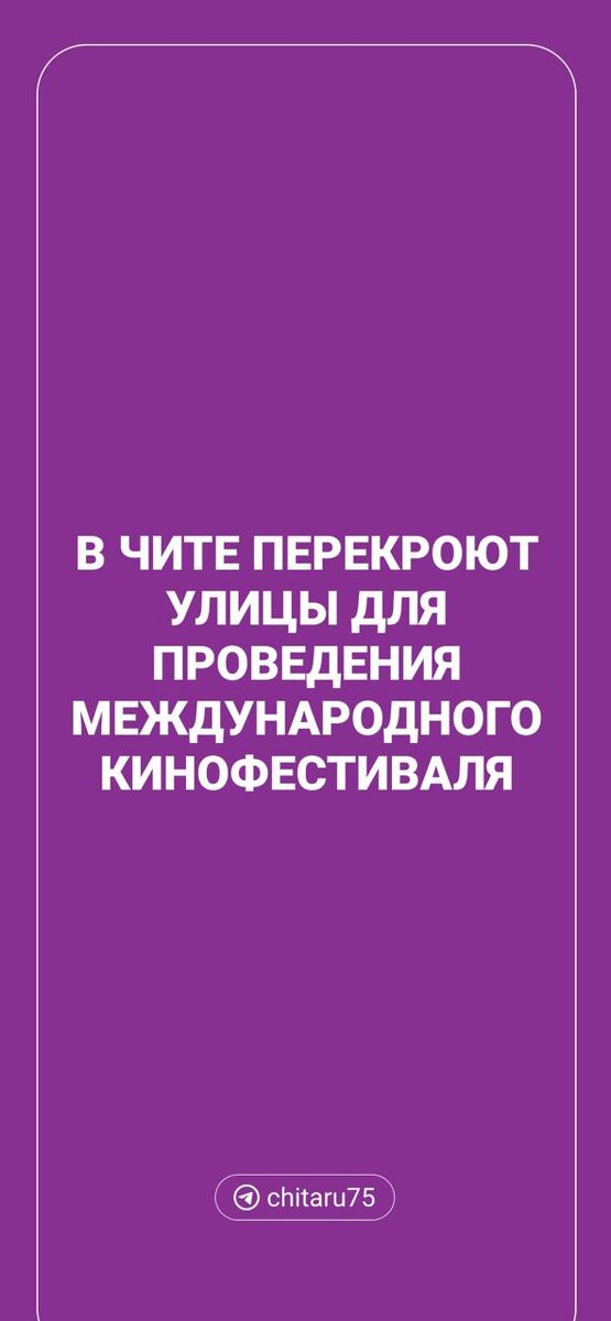 Перекрытие дорог около площади Ленина запланировано на 3, 5 и 8 июня. Это необходимо для репетиций и проведения XII Забайкальского международного кинофестиваля, сообщили в тг-канале городской администрации. В 2024 году фестиваль стал самым масштабным культурным событием региона: прошло 84 мероприятия, которые посетили более 25 тысяч человек. В этом году фестиваль поддержали крупные компании, включая Быстринский ГОК и группу «Хайлэнд Голд».