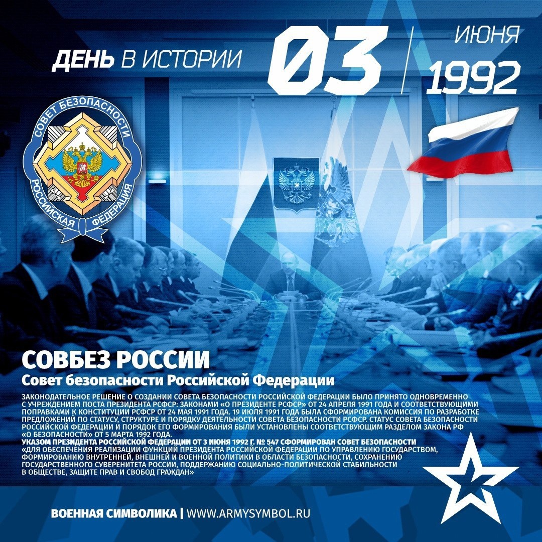 Совбез России с 1992 Совет безопасности Российской Федерации Законодательное решение о создании Совета безопасности Российской Федерации было принято одновременно с учреждением поста Президента РСФСР: законами «О Президенте РСФСР» от 24 апреля 1991 года и соответствующими поправками к Конституции РСФСР от 24 мая 1991 года. 19 июля 1991 года была сформирована Комиссия по разработке предложений по статусу, структуре и порядку деятельности Совета Безопасности РСФСР. Статус Совета Безопасности Российской Федерации и порядок его формирования были установлены соответствующим разделом закона РФ «О безопасности» от 5 марта 1992 года. Указом Президента Российской Федерации от 3 июня 1992 г. № 547 сформирован Совет Безопасности «для обеспечения реализации функций Президента Российской Федерации по управлению государством, формированию внутренней, внешней и военной политики в области безопаснос Показать полностью... Подпишитесь на наши группы ВКонтакте и в Одноклассниках - читайте, смотрите и