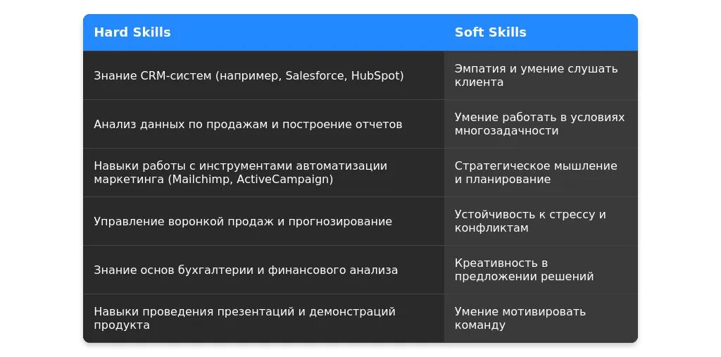 Пример адаптации раздела "Навыки": "Коммуникабельность" → "Работа с возражениями и закрытие сделок."