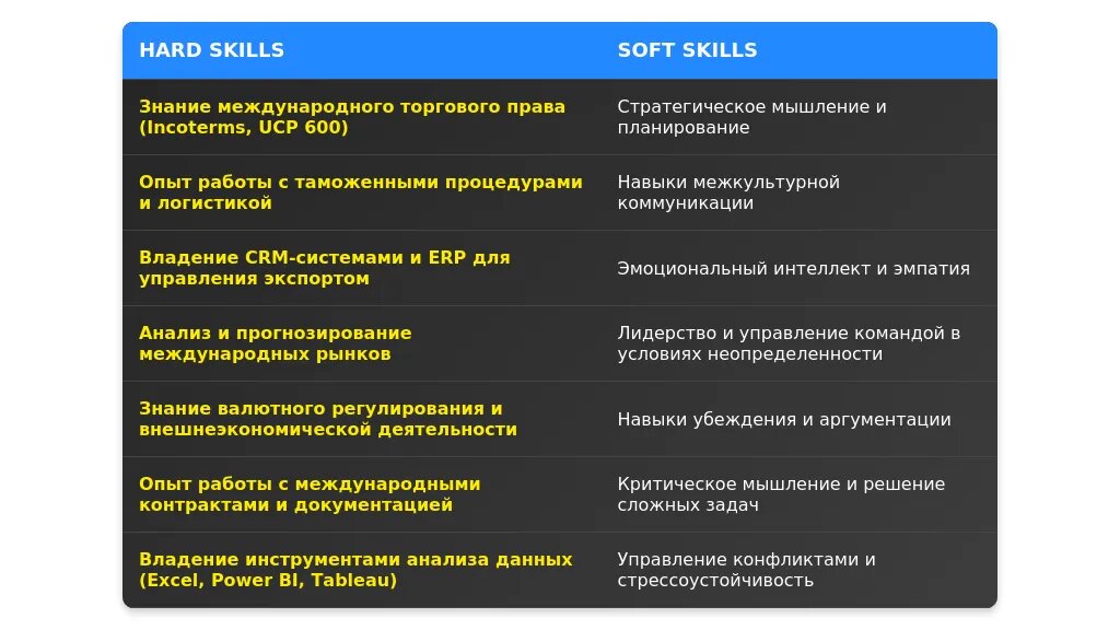 Технические навыки для руководителя отдела экспорта