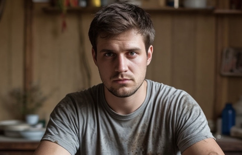 Он стоял в дверном проеме в мятой футболке и спортивных штанах, которые не снимал уже третий день. Волосы всклокочены, щетина неопрятная.