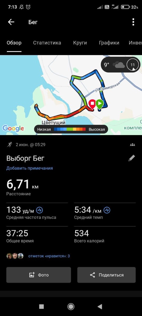 1. Утренняя тренировка 05:29 6.71км Темп 5'34 + купание в Финском заливе и оттуда босиком 2км до дома и 20 отжиманий.