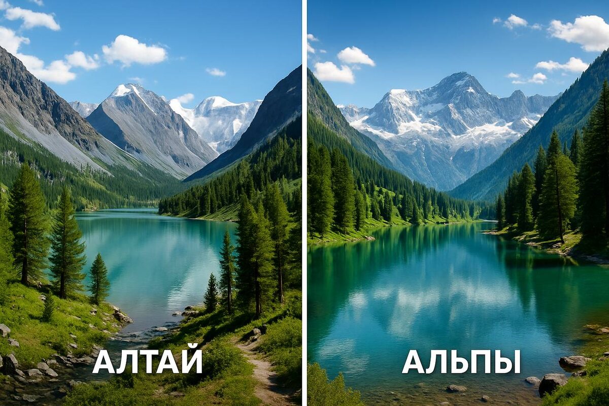 Бывает, смотришь на фотографию — и теряешься: то ли это Альпы, то ли Алтай. Где-то за границей, а может, и вовсе в Сочи. Природа любит повторяться, и в этом есть своя магия. Не обязательно лететь на край света, чтобы вдохновиться — порой достаточно просто открыть карту России. А иногда, наоборот, хочется увидеть, как те же горы, пляжи или городские улочки выглядят в другой культуре и другой стране. В этой статье — подборка мест, где природа словно рисовала одними и теми же красками. Россия и зарубежье: два отражения одной красоты. Выбирайте, сравнивайте и вдохновляйтесь. Алтай, Россия — мощные хребты, туман над долинами, бирюзовые озёра и тишина, в которую хочется зарыться. Это про природу без фильтров и толп туристов. Альпы, Европа — та же величественность, те же озёра, но с идеально выстриженным газоном и горнолыжной инфраструктурой. Красиво, удобно, дорого. Чем похожи: пейзажи, чувство уединения, мощь гор и красоты озёр Чем отличаются: Алтай — дикий и душевный, Альпы — комфортные и