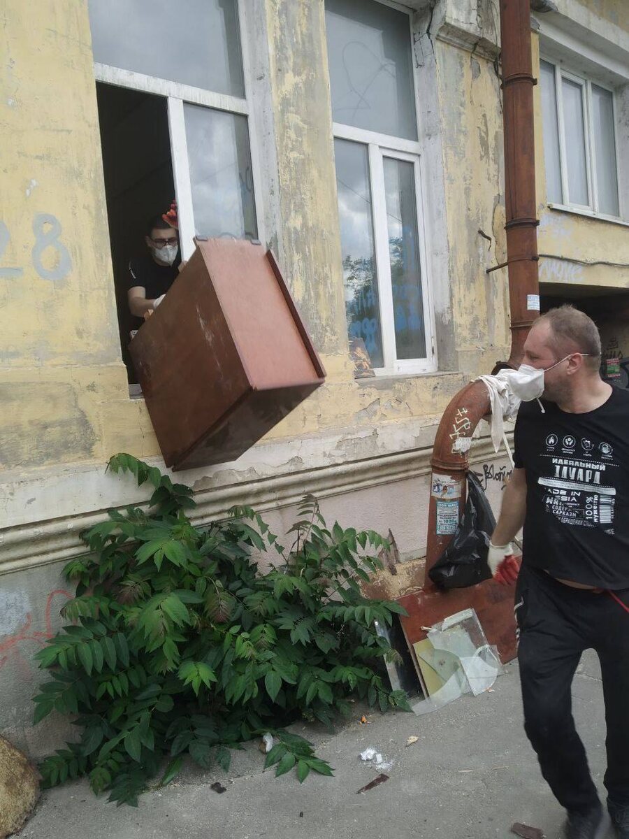 Речь идет о доходном доме на Университетском, 28. Они вывезли 8 тонн мусора.