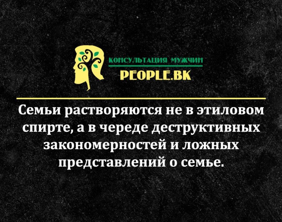 Как же многие любят всё валить на спиртные напитки! Объявляют алкоголь главнейшей причиной развала семьи. "Ка бы не пил, то и семья была бы в порядке! " Кричат они со всех сторон. От молода, до стара в один голос твердят, что разваливает семью тот, кто пьёт, а это между прочим, половина всей страны и именно мужской половины. То есть, очень удобно во всём обвинить пьющего мужа. Этим активно пользуются многие женщины. Они ссылаются на то, что как только муж стал выпивать в их семье появилась бесконечная череда конфликтов. А ведь действительно, конфликты появились, а ещё появилось рукоприкладство, на которое, как многие считают, у мужа нет права. Ну он же мужчина, а мужчины женщин не бьют, а в идеале вообще не дерутся, такой миролюбивый и компромиссный идеальный мужчина. Но я вам открою по истине запрещённую тайну, так сказать приподниму юбку этой девице. Алкоголь лишь последствие уже существующих проблем. Он эти проблемы обнародует, демонстрирует то, что семья держится всего л
