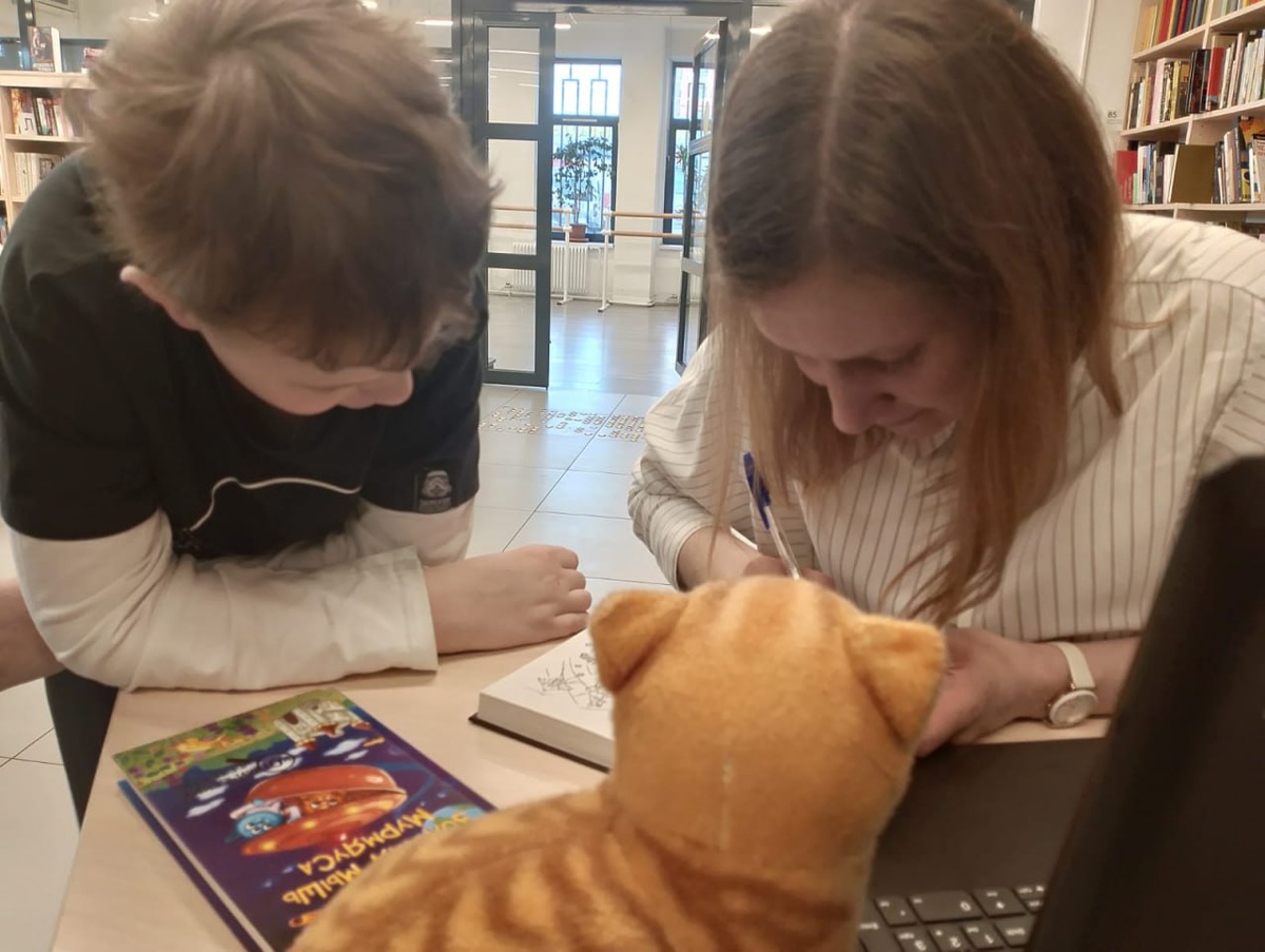 ✨Мурчащие истории 22 мая член Союза детских и юношеских писателей Ольга Юдина провела встречу с детьми в московской библиотеке № 116. Ребята активно участвовали в интерактивной программе, придумывали свои истории, а заодно узнали интересные факты о котиках. В конце встречи дети смогли задать свои вопросы писательнице, а также узнать о том, как рождаются книги. Ольга Юдина — участник проекта «Завтрашние классики: воспитание через слово», реализуемого Союзом детских и юношеских писателей при поддержке Президентского фонда культурных инициатив.