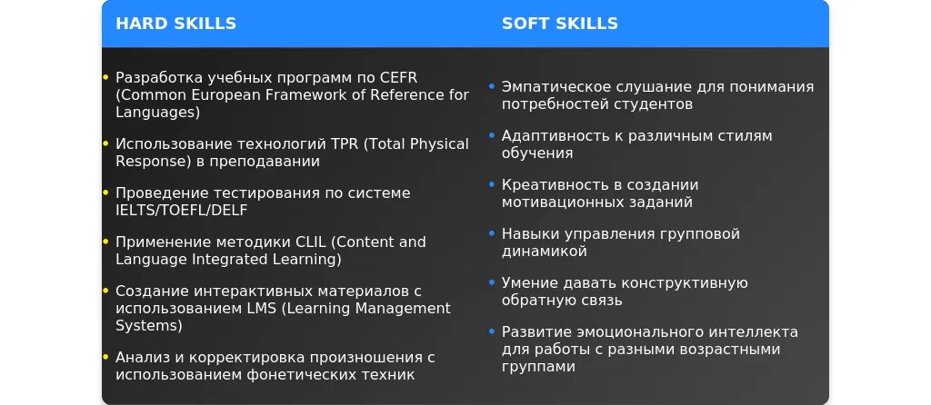 Работа с ключевыми словами: используйте термины из описания вакансии, такие как "методика CLIL", "бизнес-английский", "индивидуальный подход".