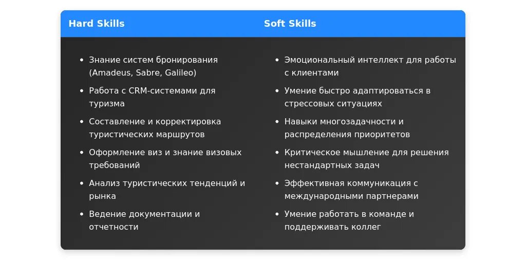 После: "Владение CRM-системами (Bitrix24, Salesforce), опыт работы с программами для бронирования (Amadeus, Galileo)."