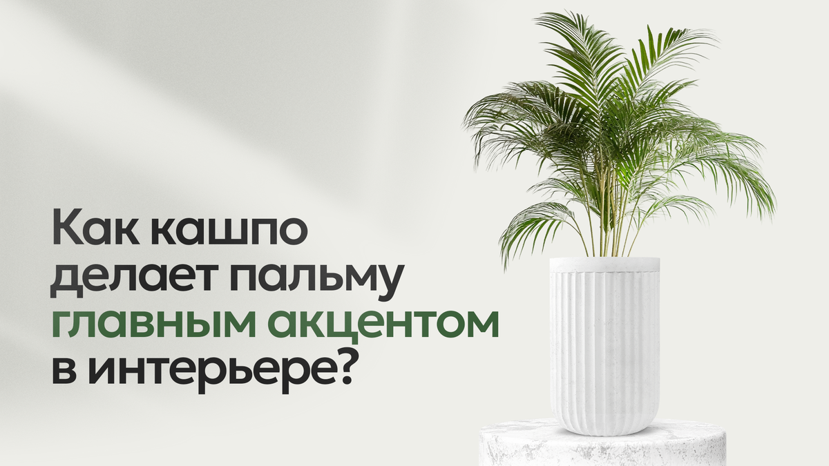Кашпо для пальмы — не только про эстетику, но и про комфорт для корней и стабильность роста. Пальма привлекает взгляд и наполняет пространство тропической легкостью. Но чтобы это зеленое «скульптурное» решение действительно работало на интерьер, одной пальмы недостаточно. Решающую роль играет кашпо – та самая база, которая может либо подчеркнуть растение, либо обесценить его визуальный эффект. Пальма – растение крупное и пластичное, поэтому ее окружение должно быть сдержанным, но выразительным. Кашпо в этом контексте работает как архитектурная основа. Именно оно задает общий ритм: вытянутая форма подчеркивает высоту, широкая чаша создает ощущение устойчивости, строгая геометрия придает образу собранность. И если пальма – это движение вверх, то кашпо – это уверенное «основание» всей композиции. В современных интерьерах все чаще отказываются от декоративных мелочей в пользу крупных, чистых форм. И хорошо подобранное кашпо может стать полноценным объектом дизайна, не перегружая пространст