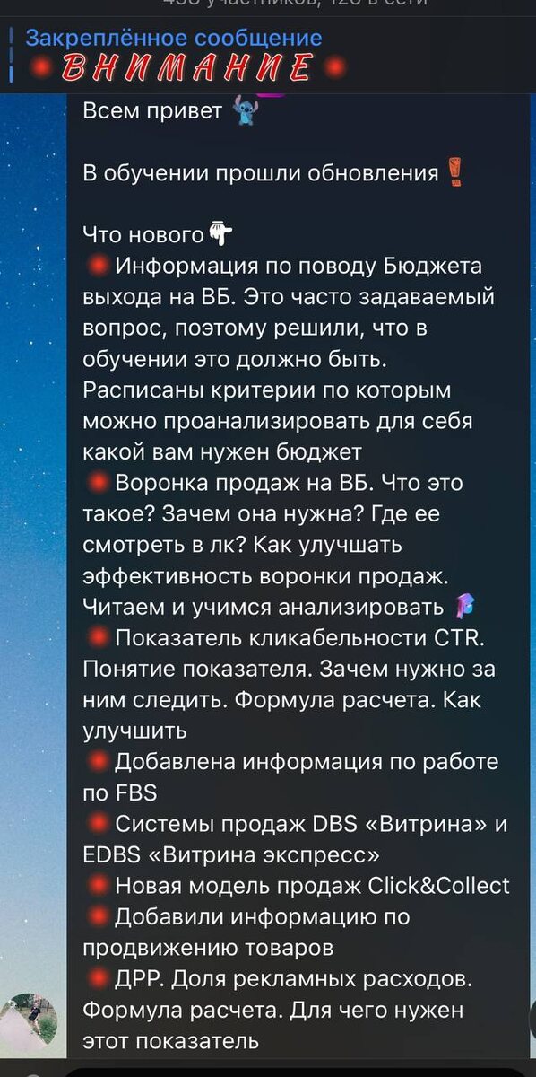 ✨ Важное обновление в нашем проекте! ✨ Обновили информацию, касающуюся работы с платформой Wildberries 🛒 Всем известно, что 💶💵💴отличается динамичностью: условия для работы и правила постоянно меняются. Именно поэтому наше обучение предоставляет вам только самую актуальную информацию, которая регулярно обновляется, чтобы вы всегда оставались в курсе всех нововведений. Могу с уверенностью сказать, что вы не найдете столь ценных курсов по такой минимальной стоимости, предлагающих столь оперативную и полную информацию! Если ваша цель — стать успешным селлером на Wildberries, вам идеально подойдут два наших тарифа: ⦁ «WB + Китай» — 9 900₽ ⦁ «Тариф Комбо» — 13 990₽ P.S Так же оба тарифа включают освоение новой профессии МЕНЕДЖЕР WB. Не упустите свою возможность, пишите @Markel_son
