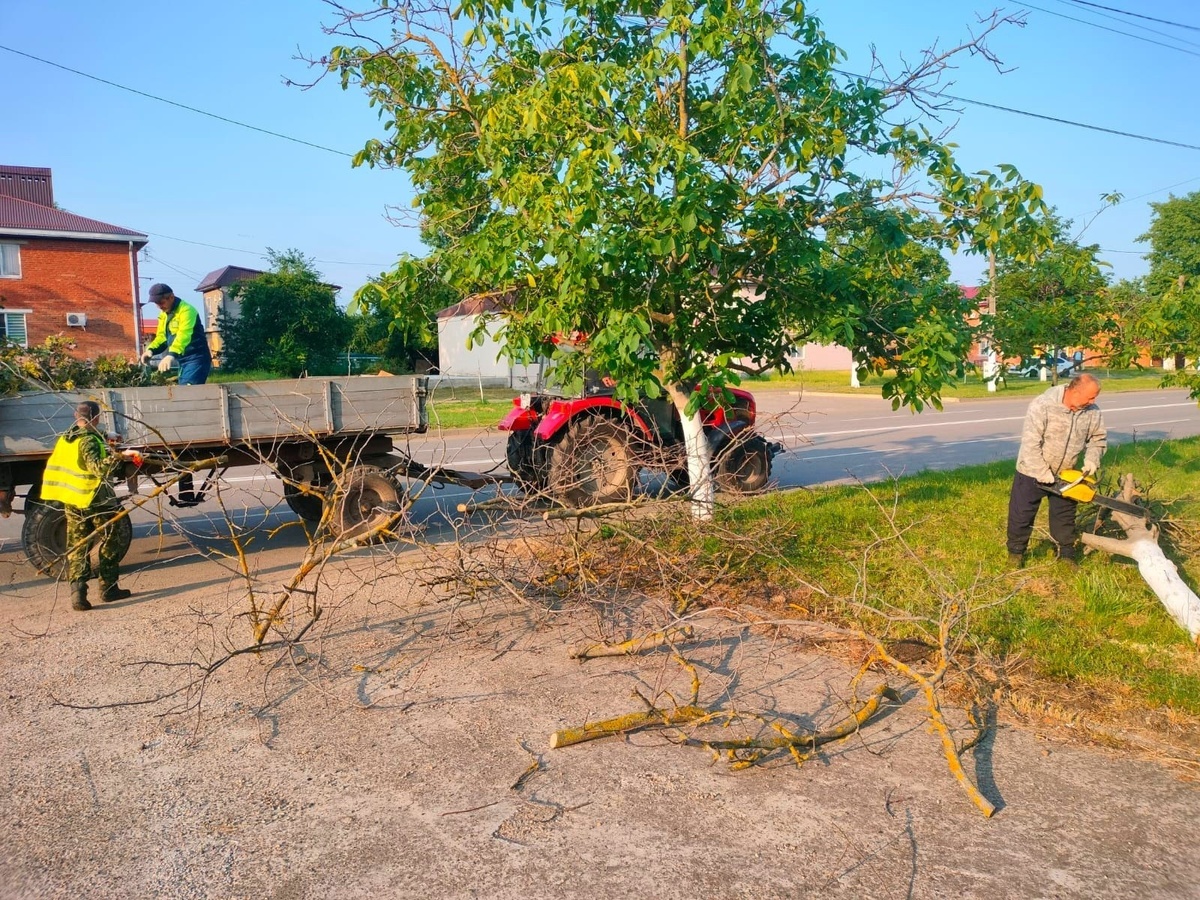 Сотрудниками учреждения выполняются работы по спилу сухостоя по проспекту Ленина.