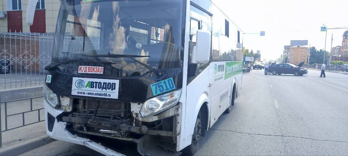 Пострадали 7 пассажиров: в Омске автобус врезался в легковушку