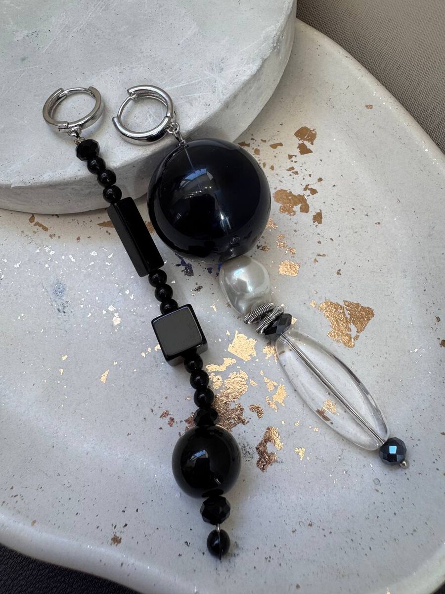 Еще одна пара очаровательных ассиметричных сережек.🤩 Сочетание различных геометрических форм + разнообразные материалы = 🖤 ✨Нажмите для заказа ✉️ Нажмите чтобы задать вопрос