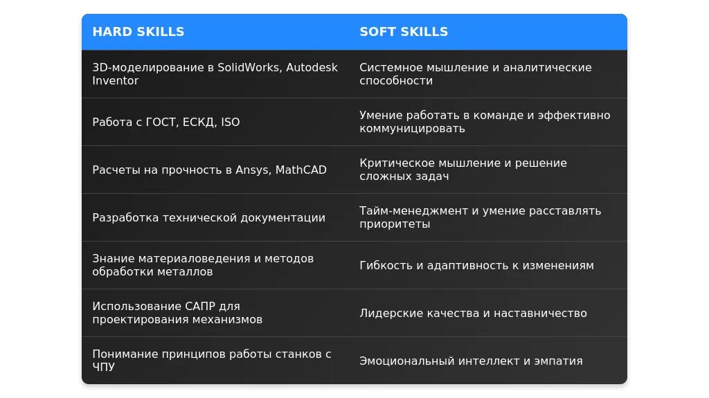 При анализе вакансии важно выделить ключевые требования, которые работодатель считает обязательными. Обращайте внимание на технические навыки, такие как владение CAD-программами (например, SolidWorks, AutoCAD, Kompas-3D), знание стандартов и нормативов (ГОСТ, ISO), а также опыт работы с конкретными типами проектов (например, машиностроение, строительство). Отдельно выделите желательные требования, такие как знание иностранных языков или опыт работы в международных проектах.