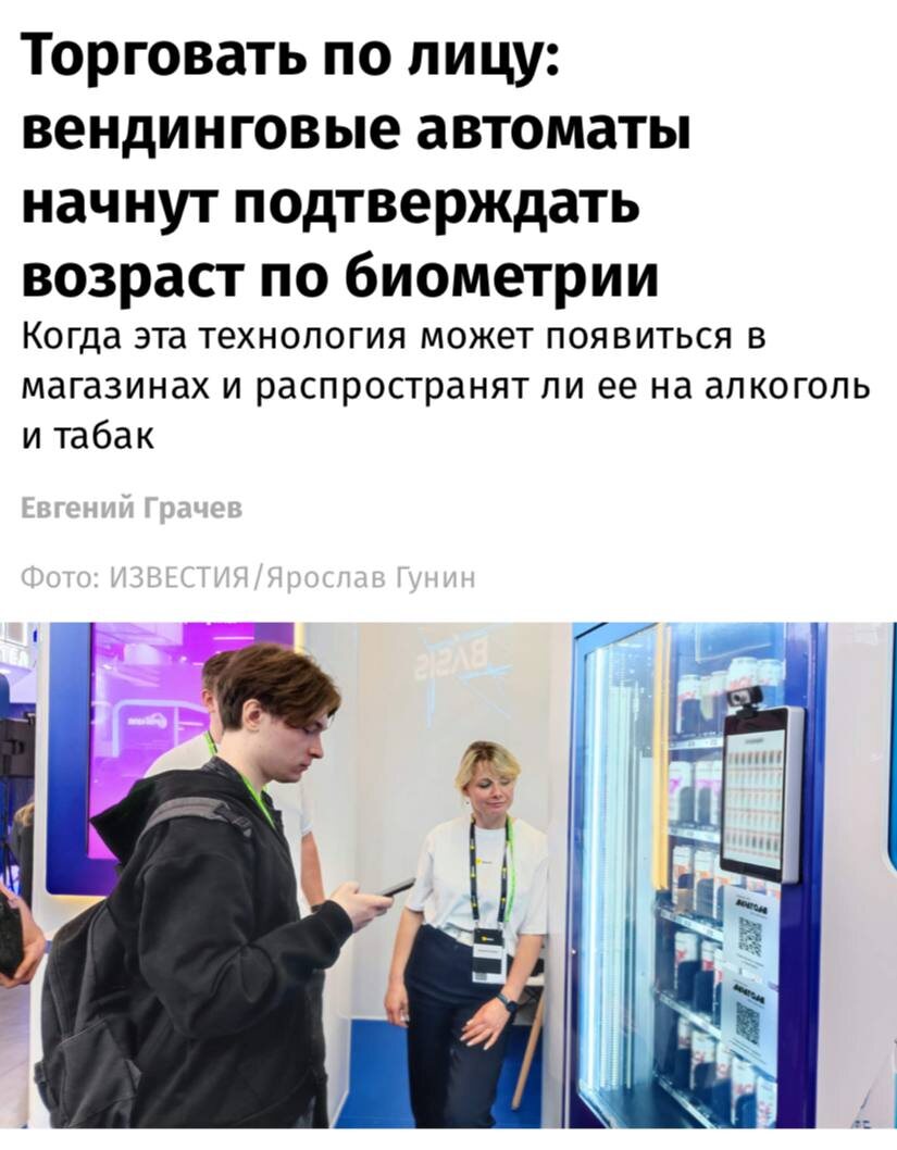 👀Минцифры предложило ввести возможность подтверждения возраста через биометрические данные для вендинговых автоматов в России.