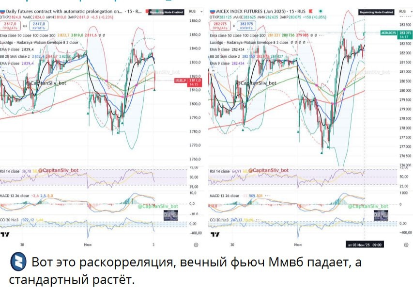 🟢Не так давно я разбирал пост одного блогера, который накидал обучающего материала про клиринги, о том что их три в день и они опасны (тут), сегодня снова не могу пройти мимо - нужно на этом примере объяснить простым языком происходящее. Вопрос: ПОЧЕМУ вечный фьючерс IMOEXF сегодня пошел вниз, а классический фьючерс MXI/MIX вверх? Ответ: Классический фьючерс MXI/MIX пошел вверх, т.к. акции пошли вверх сегодня. Дивгэп Лукойла уже учтен данным фьючерсным графиком, поэтому тут нет никаких дивгэпов. А вот в вечном фьючерсе IMOEXF и в базовом графике IRUS сегодня гэп из-за дивгэпа Лукойла. Держатели вечного фьючерса IMOEXF получили сегодня тоже дивиденды, которые публикуются на сайте мосбиржи вот тут. Соответвенно с шортистов вечного фьючерса эти дивиденды будут списаны. Об этом и многом другом я делал видео про вечные фьючерсы. Ближайшие даты закрытия реестра, чтобы не пропустить дивиденды в IMOEXF: ©️2 июня — TATN, TATNP ©️3 июня — LKOH ©️9 июня — IRAO ©️9 июня — PHOR 🚗 итого, никак