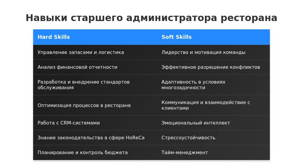 Ключевые слова: старший администратор, ресторан, управление, обслуживание клиентов, операционная деятельность, координация, организация работы.
