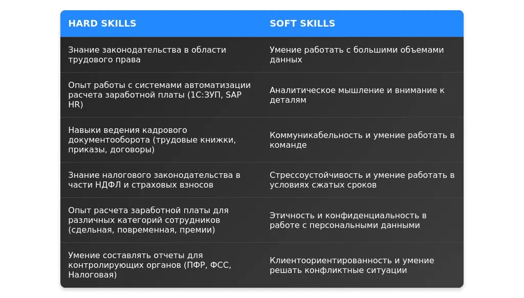Технические навыки для специалиста по расчету заработной платы и кадровому делопроизводству