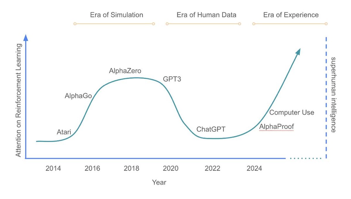 Дэвид Сильвер (один из основателей DeepMind) и Ричард Саттон (автор классического учебника по обучению с подкреплением) выпустили статью, только это не привычная нам статья с результатами, а то, что в англоязычной литературе называется position paper; в этой работе они постулируют начало "эры опыта", когда модели начнут получать информацию непосредственно взаимодействуя с миром; это аналог того, как обучаются дети с одной стороны я согласен, т.к. к 13 годам человек в среднем видел 100 миллионов слов, но способен выполнять задачи, на которые современные LLM, которые видели по нескольку триллионов слов; из этого с очевидностью следует, что опыт взаимодействия с миром важен; с другой стороны, не очень понятно, как это все будет интегрировано - мультимодальность еще далека от идеала