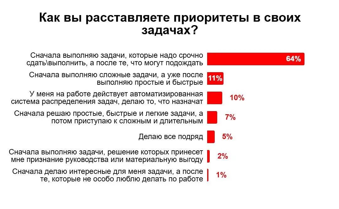 Финансисты и маркетологи оптимизируют рабочие процессы для достижения успеха Опрос показал: большинство (64%) начинают день с срочных дел. Женщины — большие спецы по срочности (70%), мужчины — по технологиям. Финансисты, юристы и маркетологи — асы по расстановке приоритетов! А вот новички до 24 лет — смелые перцы, берутся за всё и сразу. В общем, каждый планирует по-своему, и это нормально! 📢 Подробнее: uralnovosti.ru 🏞 Фото автора: biz.cnews.ru 📢 Подписывайтесь на наш канал: uralnovost