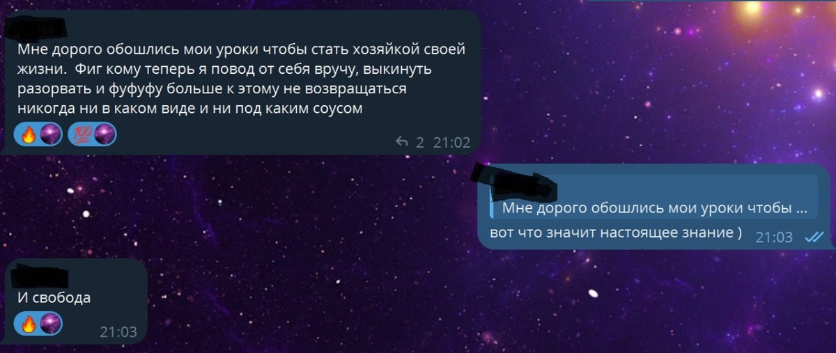 Почему люди не ценят знания, которые даются бесплатно Как интересно все же устроен мир. Только закончила писать пост как сразу же получила отклик от своего клиента. Иногда подтверждение приходит сразу, чтобы напомнить: истина не уходит в пустоту. Настоящее знание не приходит через объяснения. Оно приходит, когда всё лишнее в тебе уже сгорело. Когда нет больше поводов, оправданий, иллюзий. Когда остаётся только ты - пустой, вычищенный до основания. И свобода тут не как подарок, а как следствие. Бесплатное же знание не имеет веса. Потому что не требует платы. А всё, за что ты не заплатил собой - остаётся поверхностным. Скользит по коже, но не режет под неё. Настоящее знание приходит только тогда, когда приходится платить. Трудом, усердием, упорством, временем, страхом, утратой, внутренним обнажением, болью. Когда старое, привычное сгорает - и вместе с ним исчезаешь прежний ты. Бесплатное знание - это иллюзия сытости. Оно доступно всем, а значит ничего не значит, оно пустое. Настоящ