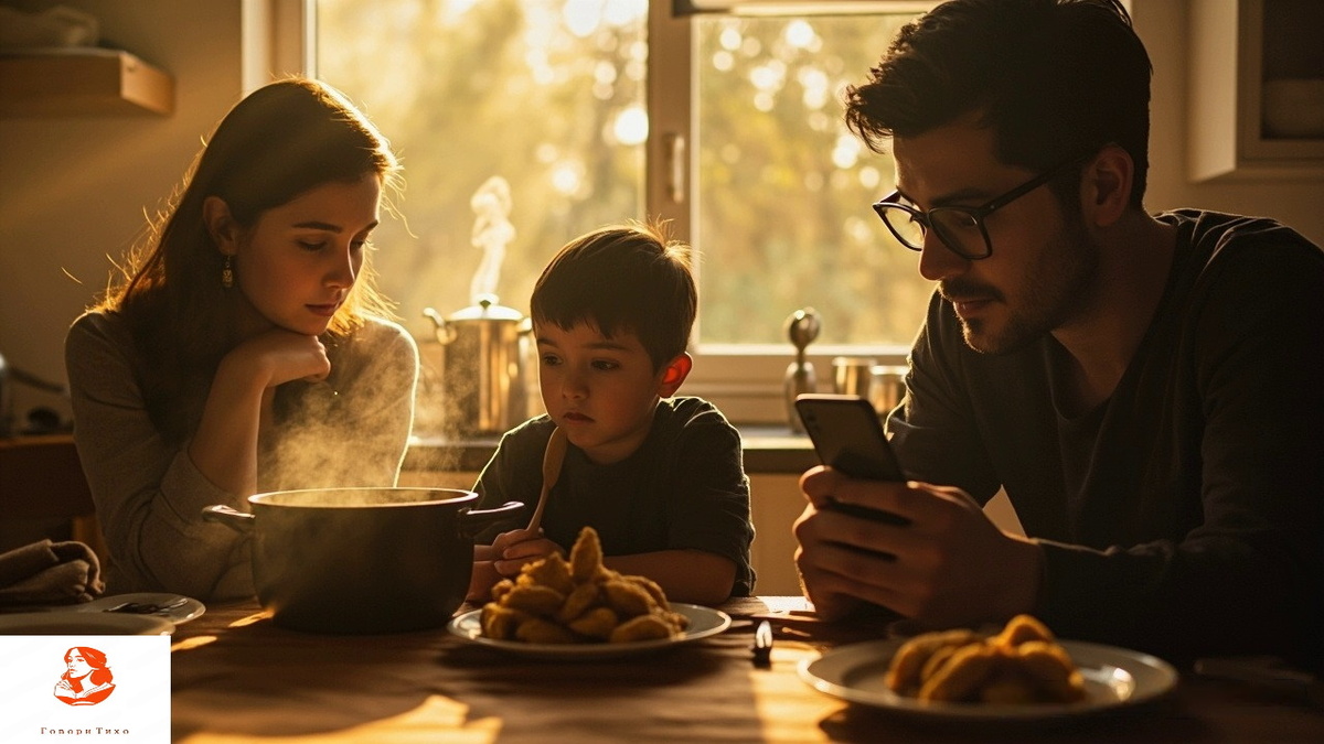 — Миш, ешь аккуратнее, — тихо сказала она, вытирая каплю супа с края стола. Сын кивнул, но тут же вернулся к своему рассказу: