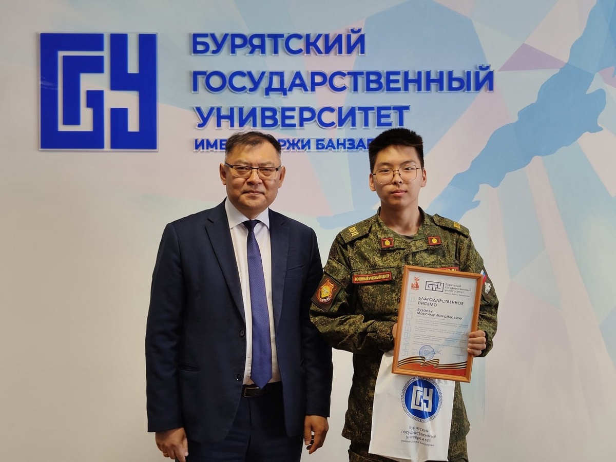 Руководитель Молодежной организации ЛДПР в Бурятии Максим Бузаев принял участие в Параде Победы в Улан-Удэ и был отмечен благодарностью ректора БГУ им. Доржи Банзарова В Бурятском государственном университете имени Доржи Банзарова состоялась встреча ректора вуза Алдара Валерьевича Дамдинова с курсантами Военного учебного центра . В ходе встречи ректор выразил особую благодарность студентам-курсантам за их достойное участие в торжественных мероприятиях, посвященных 80-летию Победы в Великой Отечественной войне. «Пройти в колонне Парада 9 мая по улицам Улан-Удэ – это ни с чем не сравнимое чувство гордости за наш народ и глубочайшей благодарности ветеранам. Я рассматриваю это не только как личное участие, но и как ответственность руководителя молодежного крыла ЛДПР. Приятно, что наш вклад в патриотическое воспитание замечен руководством БГУ», – поделился Руководитель Молодежной организации ЛДПР в Бурятии Максим Бузаев Источник фото: Бурятский госуниверситет им. Д. Банзарова