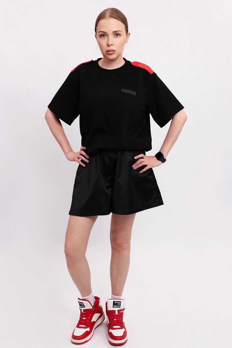 На мне новинка DNK – футболка с погонами в чёрном! И я влюблена