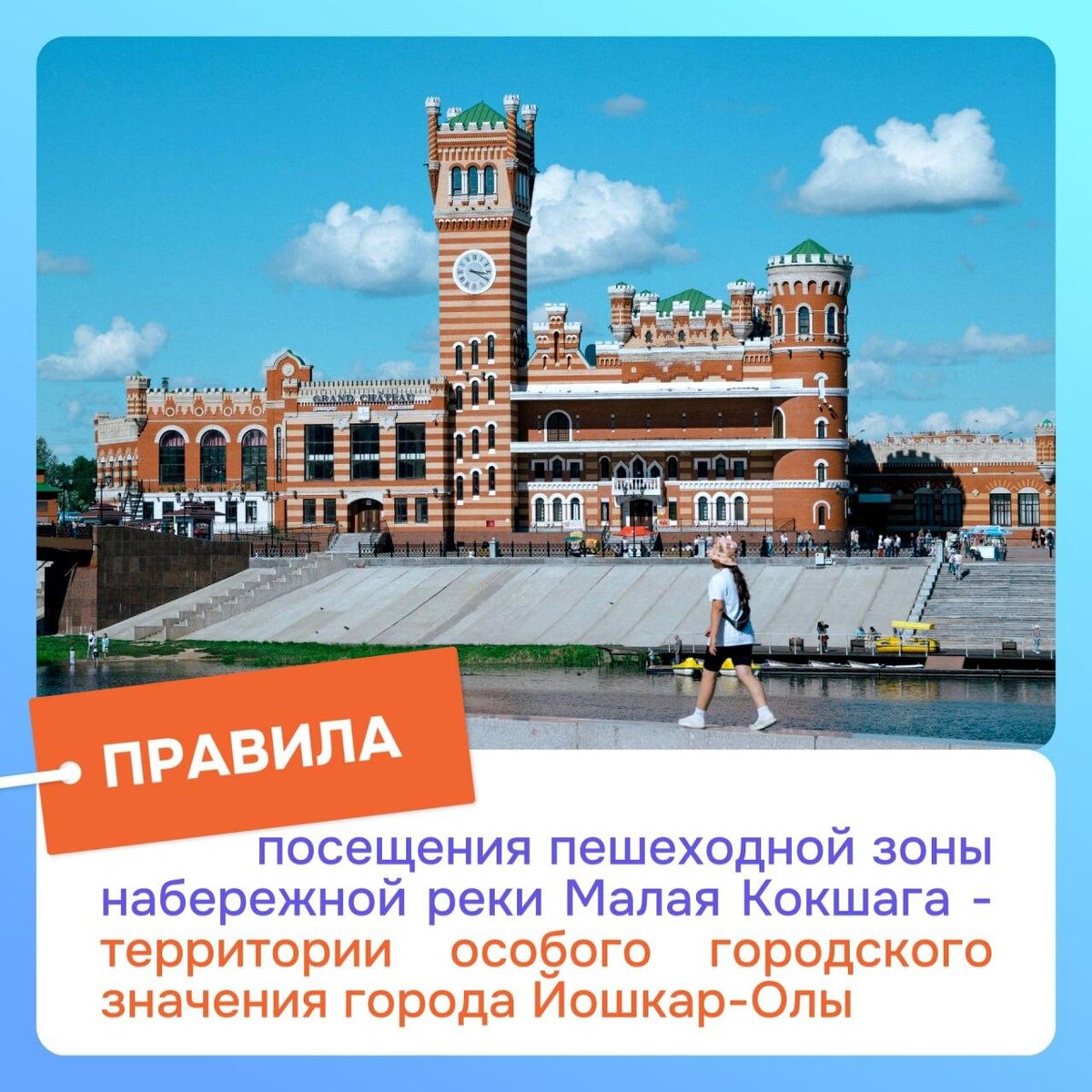 В мэрии Йошкар-Олы напомнил о правилах нахождения на пешеходной зоне и территории особого городского значения - столичной набережной