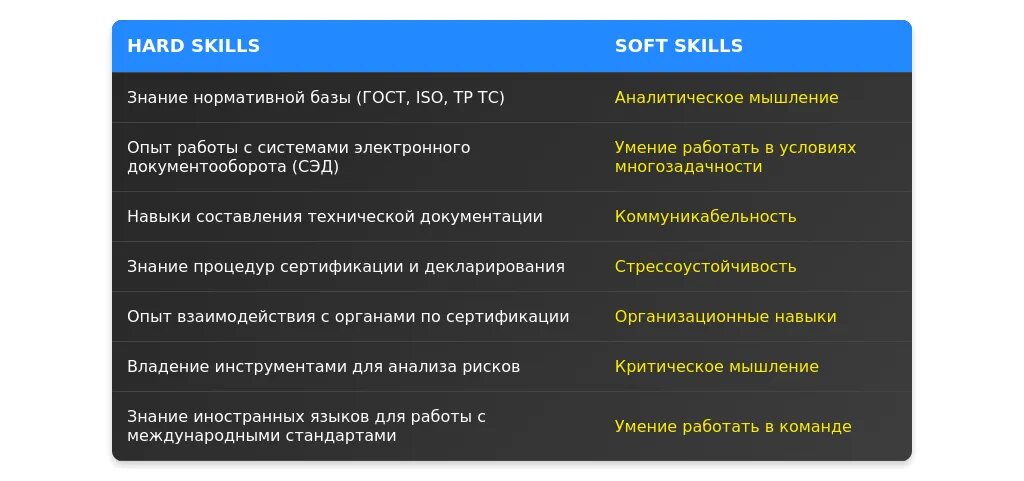 - Перечень востребованных навыков в сфере регистрации и сертификации
