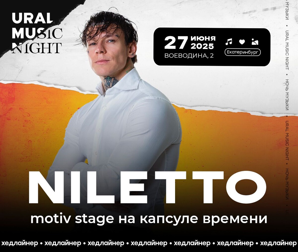 🎤 NILETTO выступит на «Уральской Ночи Музыки» Сотовый оператор Мотив объявляет, что 27 июня на МОТИВ Stage выступит NILETTO! 🎶 🌟 Концерт на Плотинке у Капсулы Времени. 🎟 Вход бесплатный! 🎵 NILETTO — автор хитов «Любимка», «Краш» и многих других. 👉 Подробности ПОДПИСАТЬСЯ 🔔 | Прислать новость @Odry77 #NILETTO #музыка #фестиваль #Екатеринбург