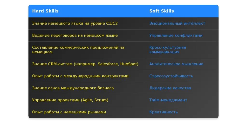 - Сосредоточьтесь на уникальных компетенциях (например, опыт работы с немецкими компаниями).