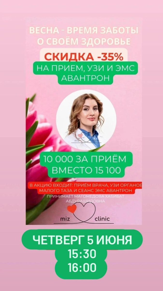 🌟 Успейте записаться к нашим специалистам ✨ Не упустите возможность получить профессиональную помощь и заботу о здоровье в Мизклиник. Звоните по номеру 8-966-040-00-54 и запишитесь на прием! 📍 Мы находимся по адресу: Улица Правды 2а. Ждем вас! 💚