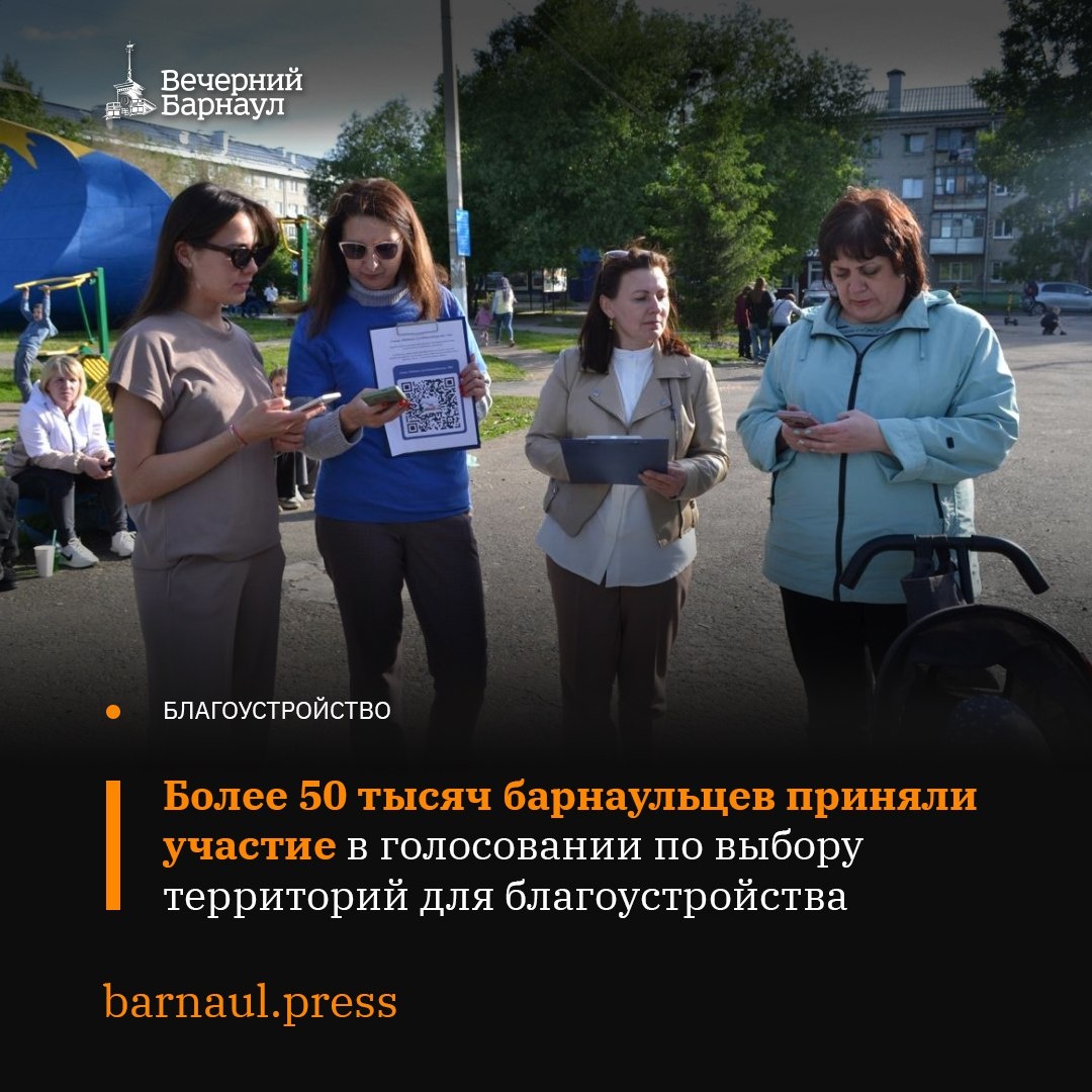 ✅ У жителей Барнаула остаётся чуть больше недели, чтобы выбрать общественное пространство, которое благоустроят в 2026 году. По данным на 3 июня, свой голос отдали более 50 тысяч горожан. Свыше 9,5 тысячи человек проголосовали за территорию в микрорайоне Южный, ограниченную улицами Чайковского и Куйбышева. Также более 6,5 тысячи барнаульцев поддержали проект благоустройства Обского бульвара. Порядка 4 тысяч жителей выступили за обновление аллеи на улице Малахова от улицы Юрина до улицы Антона Петрова. 📌 Напоминаем, поддержать территорию и дизайн-проекты можно на платформе zagorodsreda.gosuslugi.ru, авторизовавшись через портал «Госуслуги», а также при помощи волонтёров. @barnaul