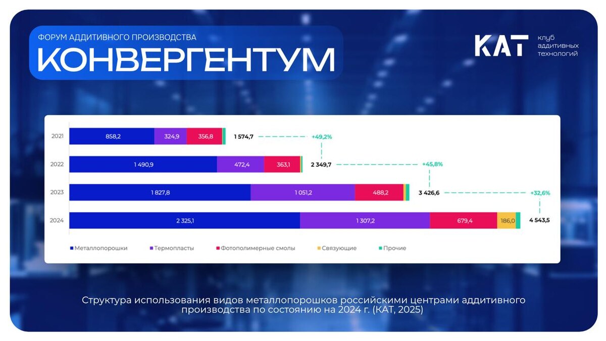 Аддитивные материалы Клуб аддитивных технологий провел комплексное маркетинговое исследование российского рынка. Полученные данные сравнивались не только с результатами прошлогоднего анализа, но и с показателями глобальных лидеров. В качестве международного ориентира использовалась аналитика компании Wohlers Associates — автора знаменитого Wohlers Report, выпускаемого уже 30 лет. Разница в структуре потребления материалов Мировые тенденции (по данным Wohlers Report) и российские реалии существенно отличаются. При этом в а американском отчете практически игнорируются российские данные, а китайский рынок, из-за политических амбиций США, рассматривается с пренебрежением. ➡️ Российский рынок: — В стоимостном выражении лидируют металлы, затем идут термопласты и фотополимерные смолы. — В количественном выражении первое место занимают термопласты, за ними — смолы, а затем металлопорошки. ➡️ Глобальный рынок: — В стоимостном выражении на первом месте термопласты, затем металлы и фотополиме