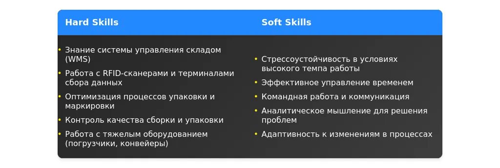 - Внимательность к деталям: минимизация ошибок при сборке заказов.