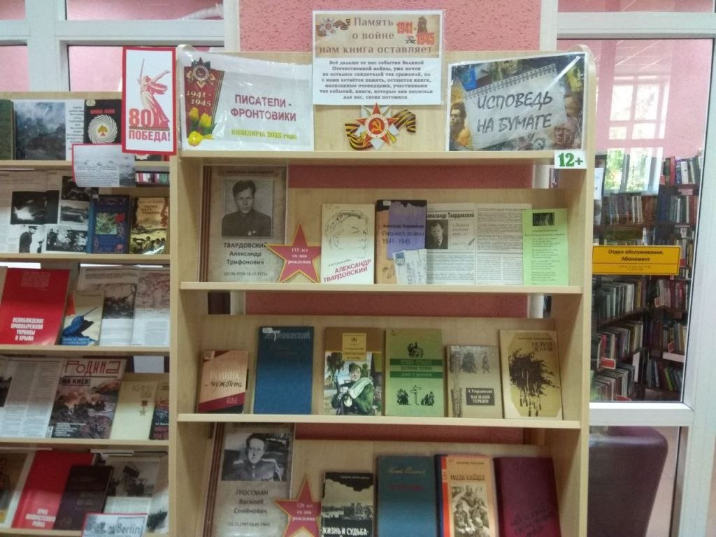 #Выставка #Год_защитника_Отечества В рамках цикла выставок художественной литературы «Исповедь на бумаге», приуроченных к 80-летию Победы в Великой Отечественной войне, в библиотеке оформлена новая книжная выставка «Писатели-фронтовики». Писатели-фронтовики — это целое поколение мужественных, совестливых, многое испытавших, одарённых личностей, перенесших военные и послевоенные невзгоды. На новой выставке представлены книги о творчестве и произведения фронтовых писателей-юбиляров: В. Гроссмана, А. Твардовского и К. Симонова. Великая Отечественная война породила плеяду талантливых писателей и жанр русской фронтовой литературы. Приглашаем познакомиться с новой книжной выставкой на абонементе в часы работы библиотеки.