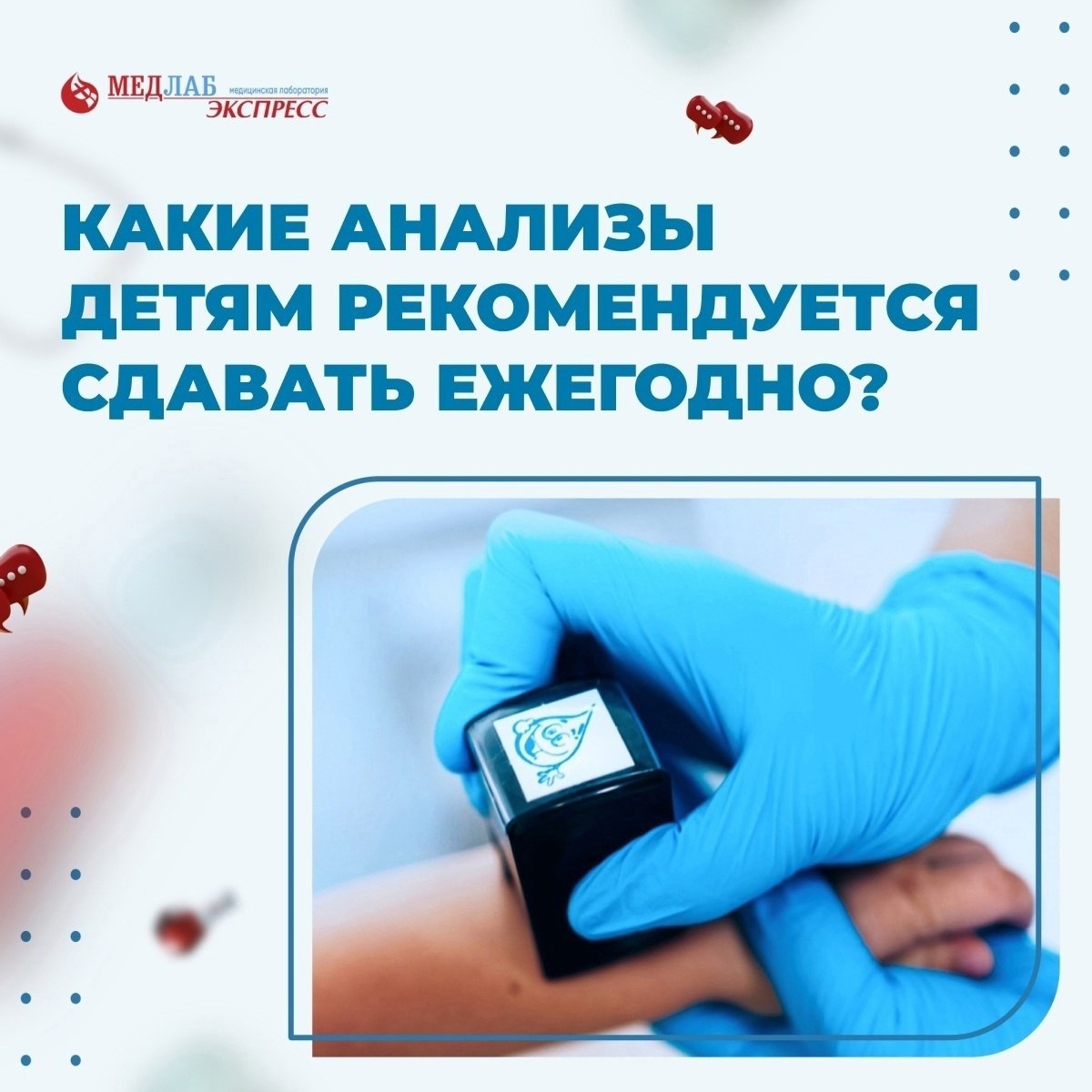 Забота о здоровье ребенка - это важная задача, которую берут на себя все родители🙃 Регулярные медицинские обследования и анализы помогают выявить проблемы в самом начале и позволяют предотвратить их развитие. Самым смелым ребятам, которые сдают анализы в нашей лаборатории, мы вручаем призы: крутые стикеры, медальки или наклейки. Помимо этого, в большинстве пунктов «МедЛабЭкспресс» есть детский уголок, где малыш сможет отвлечься или перекусить после сдачи анализов. Какие анализы детям рекомендуется сдавать ежегодно? 🔹 Общий анализ крови: помогает оценить общее состояние здоровья ребенка, выявить анемию, инфекционные процессы и другие нарушения. 🔹Общий анализ мочи: помогает выявить патологии почек, мочевыводящих путей и другие заболевания. 🔹Биохимический анализ крови: помогает оценить работу органов и систем организма, включая печень, почки, сердце и другие. 🔹Обследование на гельминтозы: выявление паразитарных инфекций. 🔹Иммунограмма: помогает оценить иммунитет и защитные силы