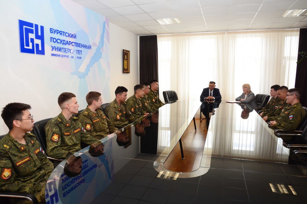⚡️Встреча ректора БГУ с курсантами военного учебного центра 🗓 2 июня состоялась встреча ректора Дамдинова Алдара Валерьевича с курсантами Военного учебного центра – студентами БГУ. 🎓 Ректор Бурятского государственного университета А.В.Дамдинов встретился с курсантами первого набора студентов БГУ, обучающимися в военном учебном центре при Восточно-Сибирском государственном университете технологий и управления. 🎙 Алдар Валерьевич отметил, что первый набор в ВУЦ студентов БГУ - это элитный набор. «Военная служба необходима для мужчины. Вам, ребята, нужно знать и боевую подготовку, знать оружие, быть готовыми защищать себя и своих близких, помогать курсантам младших курсов», - подчеркнул он в обращении к курсантам. 🎉 В своем выступлении Дамдинов А.В. тепло поздравил ребят с победой в VII межвузовской военно-инженерной универсиаде, посвящённой 80-летию со дня Победы в Великой Отечественной войне, которая проходила в Тюменском высшем военно-инженерном училище им. Маршала А.И. Прошляк