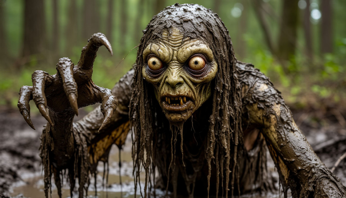 Рука вылезла наружу, за ней показалась голова – большая, лысая, с огромными, выпученными глазами. Это была Кикимора, и она выглядела еще более устрашающе, чем в его воображении. Ее тело было изуродовано, как будто оно было сделано из теней и страха, а длинные, острые когти сжимались и разжимались, словно готовясь к нападению.