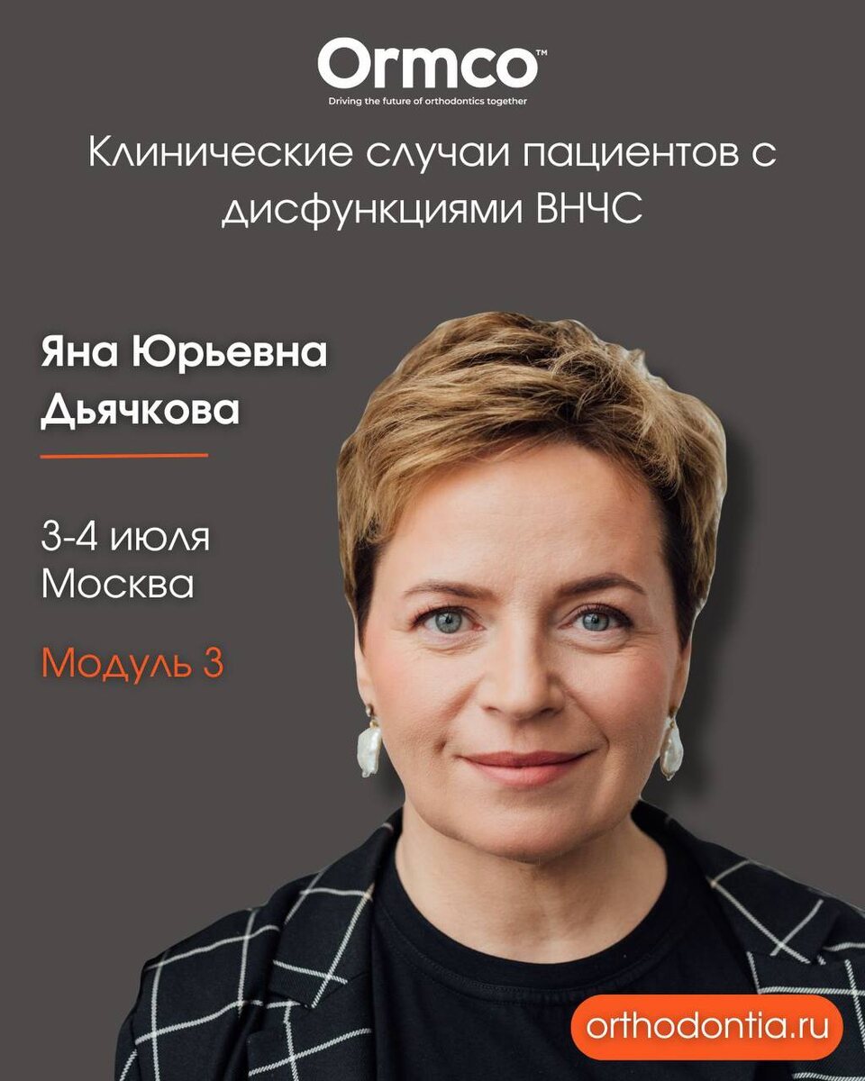 🔔Дорогие друзья! Приглашаем вас на семинар «Клинические случаи пациентов с дисфункциями ВНЧС» (3 модуль), который проведёт Дьячкова Яна Юрьевна в Москве. 🗓Дата: 03–04 июля 2025 🕙Время: с 10:00 до 18:00 📍Место: г. Москва Программа: Семинар продолжает темы диагностики и лечения пациентов с ДВНЧС и проводится для тех, кто уже прошёл первые два модуля. 🔹Обсудим клинические случаи пациентов с ДВНЧС: Постановка диагноза: ключевые методы. План лечения и выбор окклюзионного аппарата. Ведение пациентов на сплинт-терапии. Когда переходить к следующему этапу? Сочетание с ортодонтическим лечением. Контроль этапов. Как убедиться в физиологичности окклюзии в финале лечения? Особенности ретенции. 🔹Во второй части — разбор сложных тем, вызвавших трудности у участников первых модулей. 🔹В третьей — свободная дискуссия и клинические случаи слушателей. Хотите представить свой случай? Напишите нам после регистрации — вышлем список необходимых материалов. 💰Стоимость: 40 000₽ Для регистрации