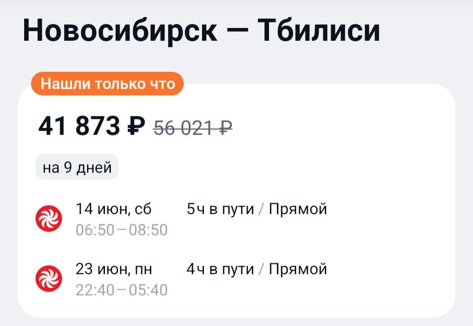 А вы в курсе, что из Новосибирска летают прямые рейсы в Тбилиси? Вот и мы забыли. Ценник с багажом на июнь перед вами. https://aviasales.tp.st/f1bb5f0l #TBS @KJA