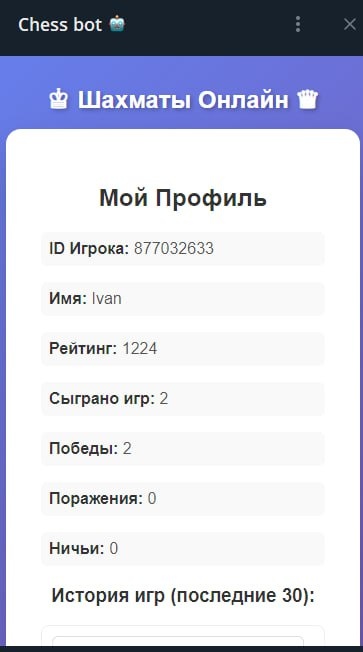 Обновили профиль игры онлайн. Теперь рейтинг считается корректно. @CHESS_and_LESSONS_bot