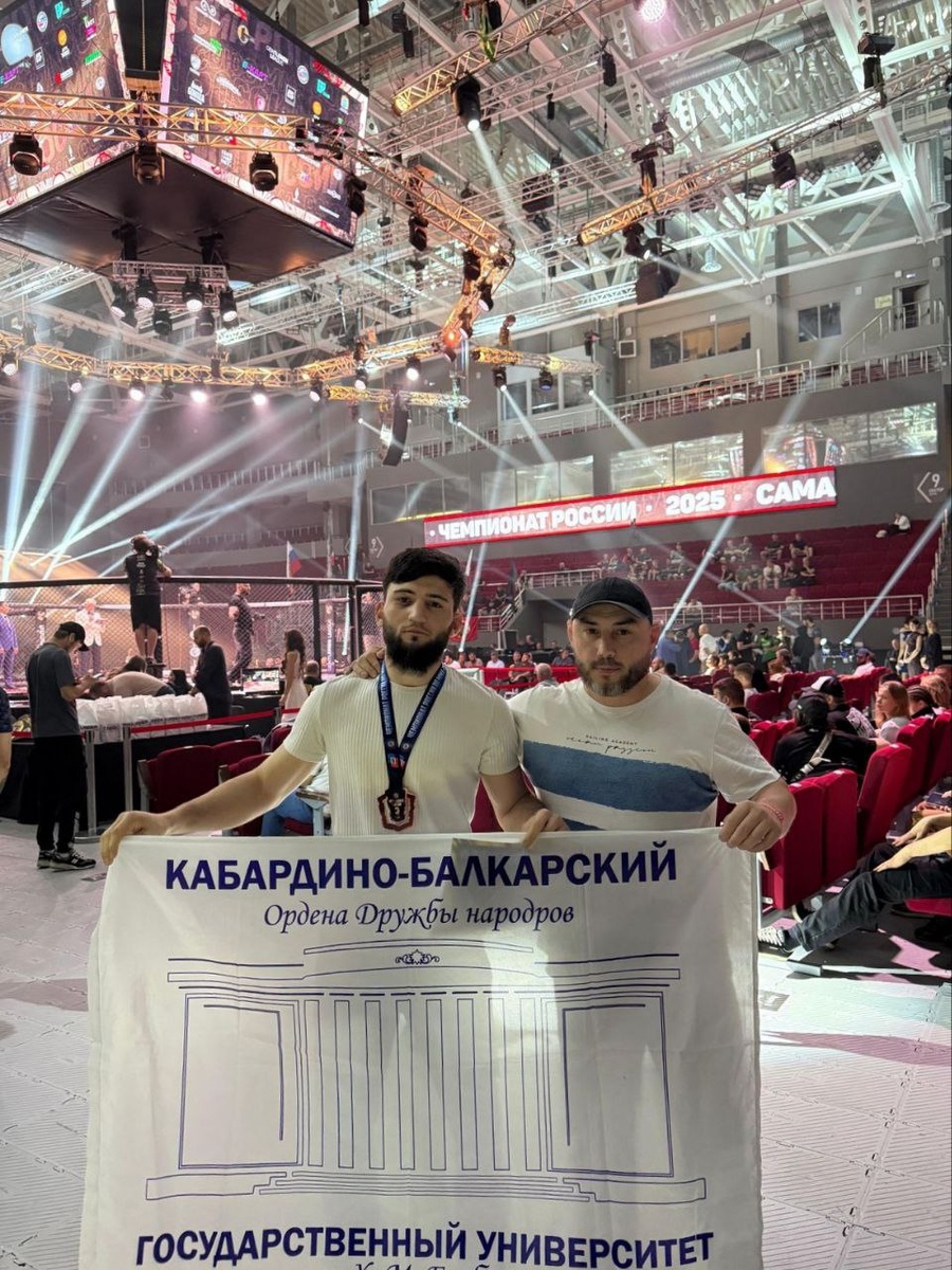 Адам Алиев – бронзовый призер чемпионата России по ММА В Самаре подвели итоги чемпионата России по смешанным единоборствам (ММА). Соревнования отборочные, победители получают право выступить на международном турнире в составе национальной сборной. За главный приз состязались более сотни бойцов из разных регионов страны. Кабардино-Балкарию представил Адам Алиев. В предварительных поединках он продемонстрировал хороший уровень физической подготовки, однако в полуфинале уступил своему сопернику. В итоге наш спортсмен завоевал бронзовую награду в весовой категории до 65 килограммов. Теперь Алиеву предстоит выступить на чемпионате мира в составе сборной России. Турнир пройдет в августе в Калуге. Наставник бойца Артур Хашукоев.