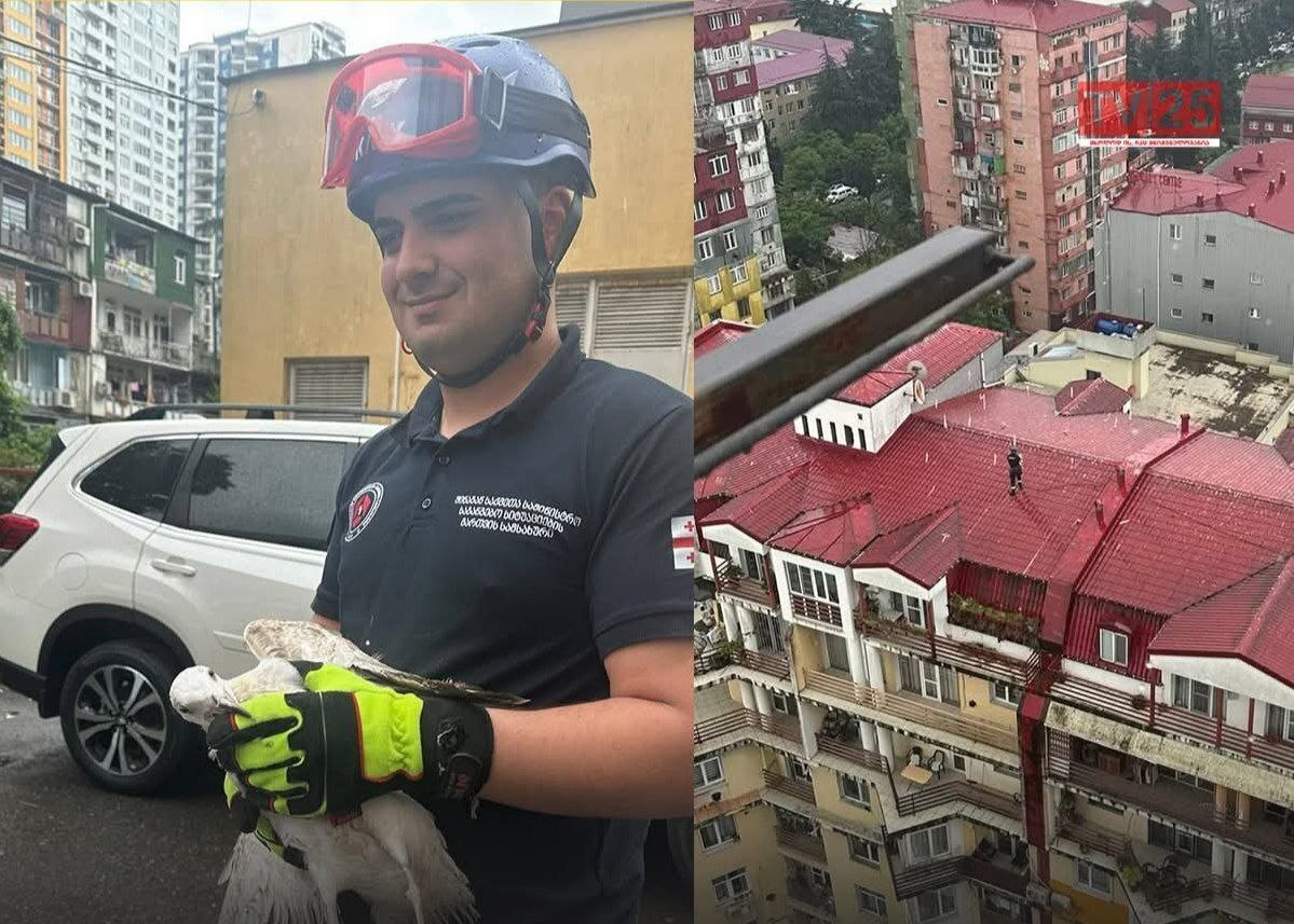 Спасатели освободили чайку, запутавшуюся в проводах на крыше высотного здания в Батуми, и отпустили ее невредимой. #батуми