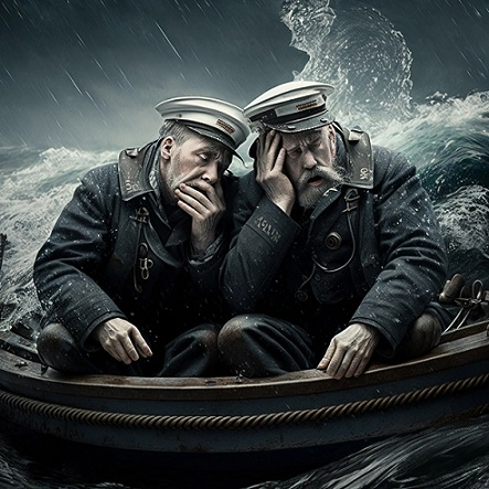 Махнув рукой на не вполне работоспособную в данный момент команду, решил всё сделать сам. Вдвоем со старшим механиком они спустили на воду маленькую рабочую шлюпку. Закрепили её концом и, перетягиваясь за него, стали штоком промерять глубины. Но тонкий капроновый конец перетёрся о фальшборт и оборвался. Ветер подхватил шлюпочку и быстро стал относить её. По закону подлости в результате спешки, усугублённой алкогольными парами, вёсел в шлюпке не оказалось. Капитану и старшему механику ничего не оставалось, как вопить благим матом, размахивая руками, в надежде, что их кто-нибудь услышит или увидит с судна.