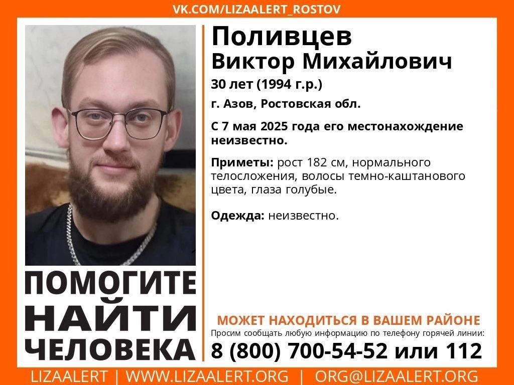 Внимание! Помогите найти человека! Пропал #Поливцев Виктор Михайлович, 30 лет, г. #Азов, #Ростовская обл. С 7 мая 2025 года его местонахождение неизвестно. Может находиться на территории Воронежской области! Если вы обладаете какой-либо информацией о пропавшем, просьба позвонить по номеру телефона горячей линии отряда 88007005452 (бесплатно по РФ) или 112. ⚡️Подпишись на «Медиа-Х Воронеж»